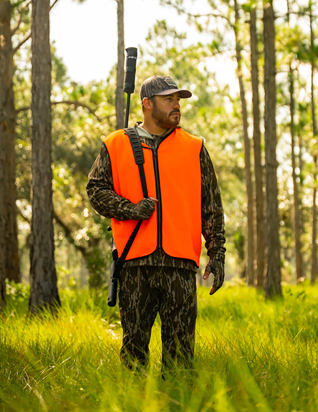 A must-have in any hunter's bag, the Blaze Vest adds a high-visibility safety layer that integrates seamlessly with your kit, keeping you seen in the field while still allowing full access to the pockets and gear beneath.