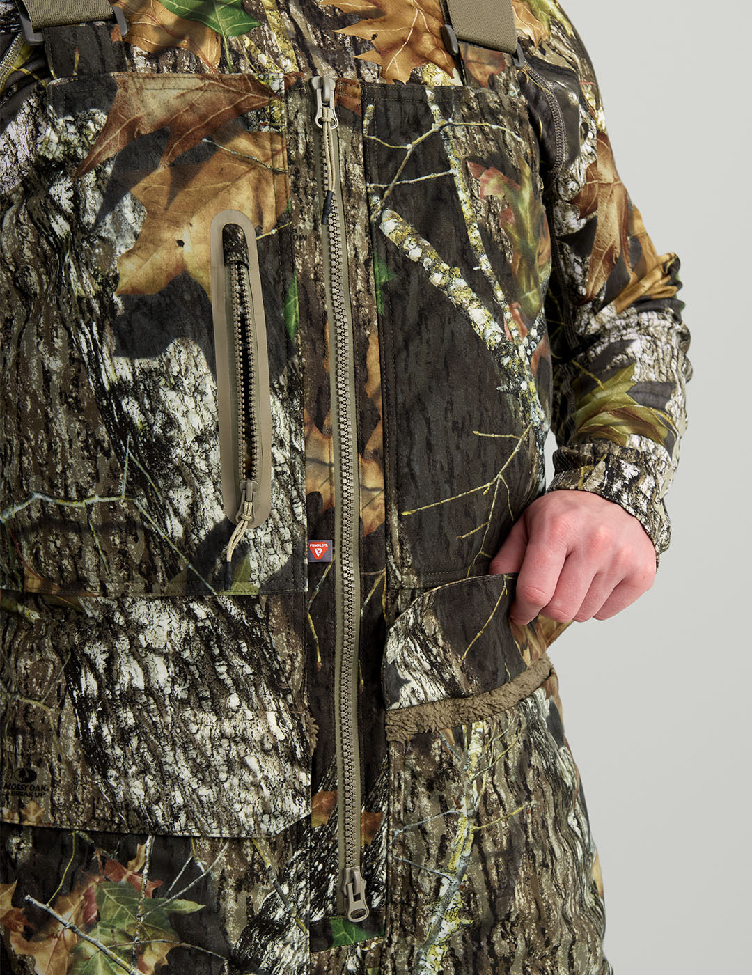 Howling winds, bone chilling wet, and dwindling sun are the calling cards of filling that last tag in late season. The updated Conifer VX3 Bib is the best choice for keeping you comfortable in the woods when those frigid temps get bucks up on their feet. This season we've added stretch paneling around the torso for easy movement while squatting, bending, and sitting while keeping the lightweight warmth delivered by Primaloft insulation and water/windproof performance to block out the elements. Ever-adjust suspenders, fleece lined hand pockets, and knee high zippers lock the fit and warmth in so you can stay out longer.