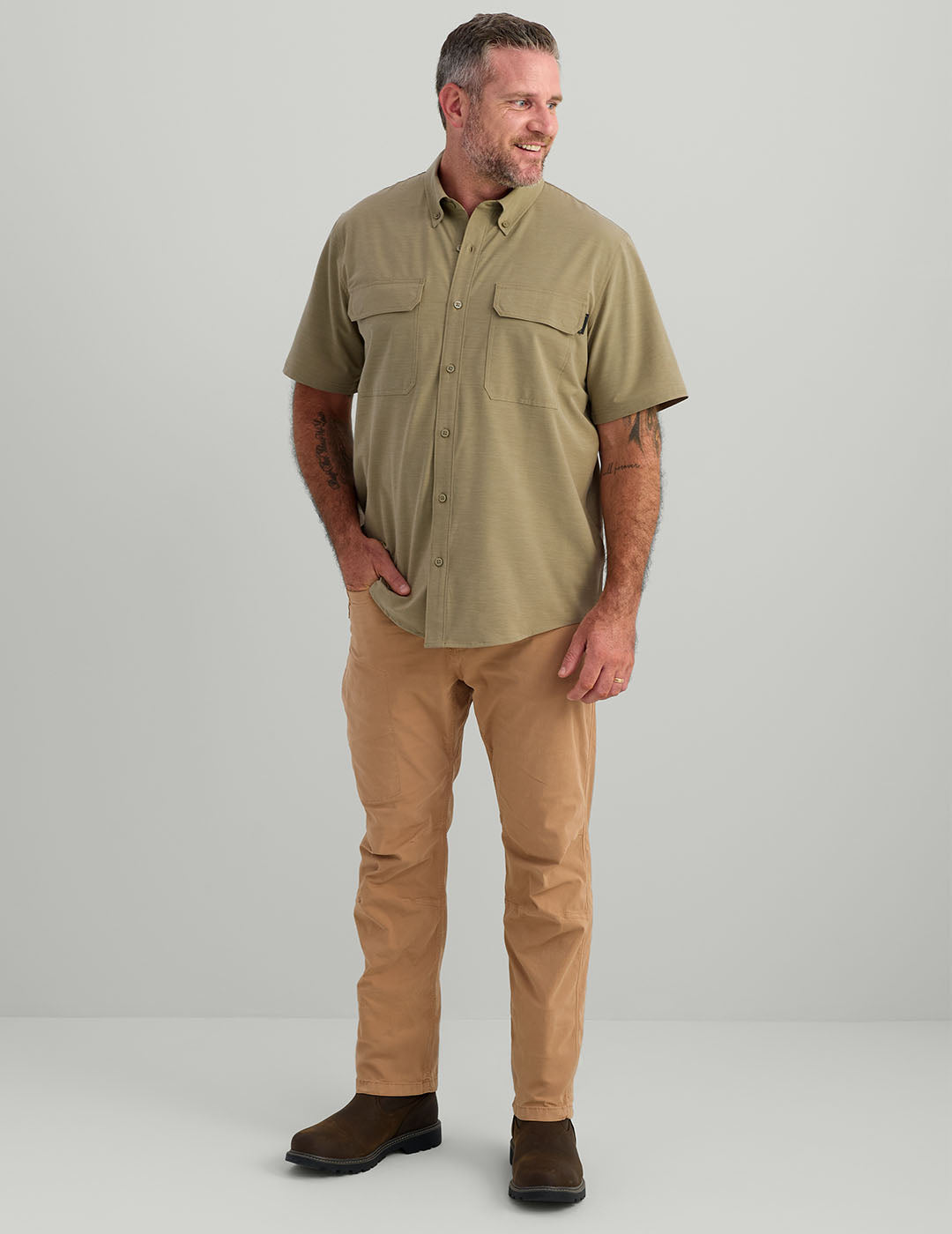 The Huntley Short Sleeve Button-Down offers a perfect balance of comfort, functionality, and style. With 4-way stretch, laser perforated back for ventilation, security front pockets, interior eye wipe, and UPF 30+ sun protection, this shirt is engineered to perform during outdoor activities and active pursuits. The fabric blend of cotton, polyester, and spandex ensures that the shirt is not only comfortable but also durable and flexible, while keeping you dry and protected from the elements. Whether you’re hitting the field, enjoying a day outdoors, or simply need a reliable, functional shirt for travel, the Huntley Short Sleeve Button-Down has you covered.