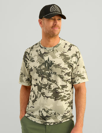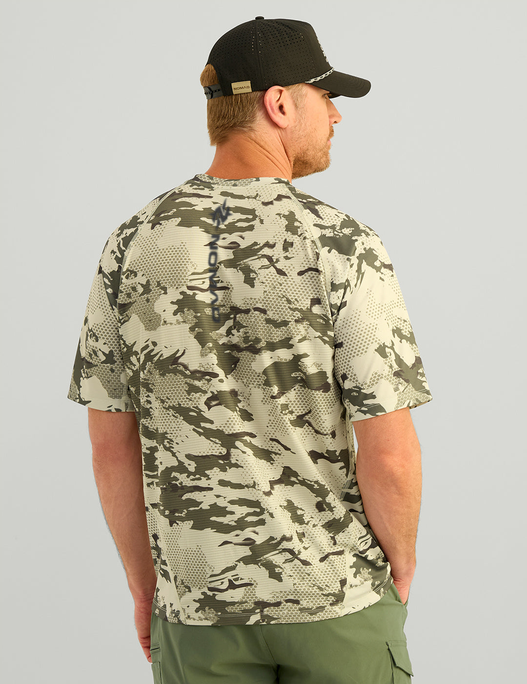 The new Mirage Short Sleeve Camo Crew delivers premium performance for the serious hunter. Built to be the ultimate in lightweight and breathable concealment, the Mirage shirt delivers hot weather comfort unlike any other in-field shirt. The UPF 50+ synthetic fabric with full mesh back panel allows extreme ventilation and moisture wicking performance to keep you cool and dry when it's time to get after it - this performance top is your go-to first layer.