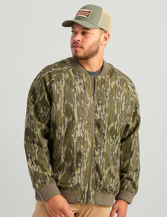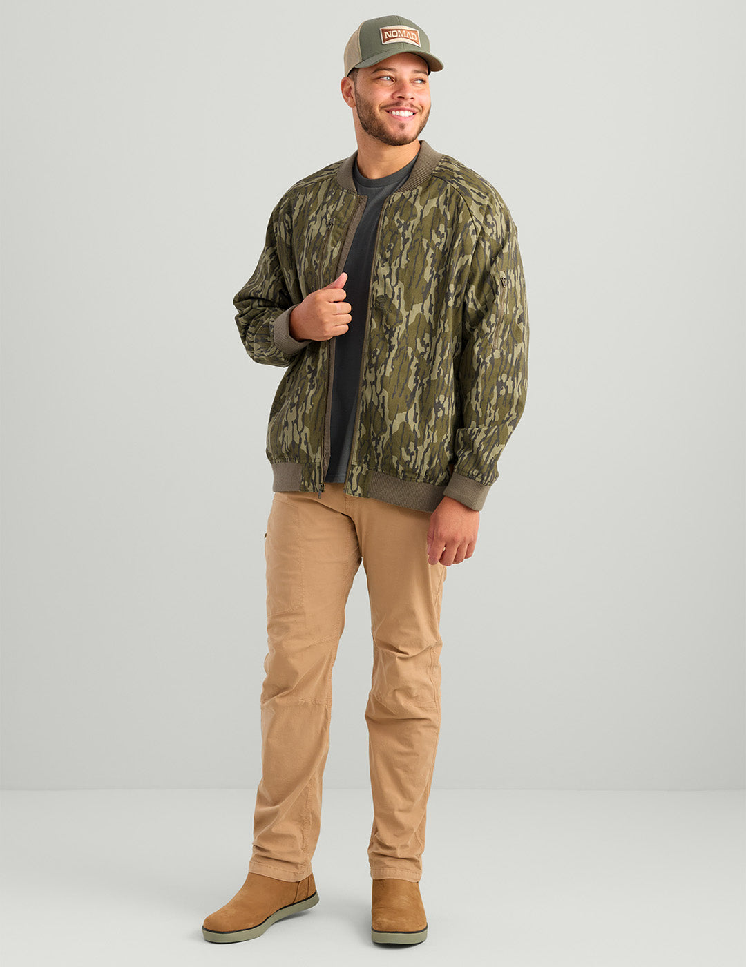 The all new Rub Line Bomber Jacket is one of our favorite jackets this fall. Using our durable and stretchy cotton canvas from the Rub Line series, we've added lightweight synthetic insulation for additional warmth and styled it with ribbed cuffs on the neck, sleeves, and waist like your favorite throwback jacket. Whether in the stand for a mid-season tag fill or in the truck headed out on date night, the Rub Line Bomber is an easy winner.