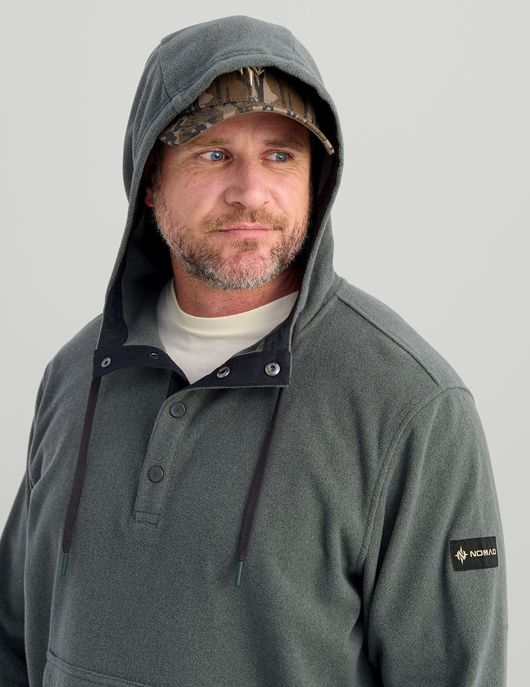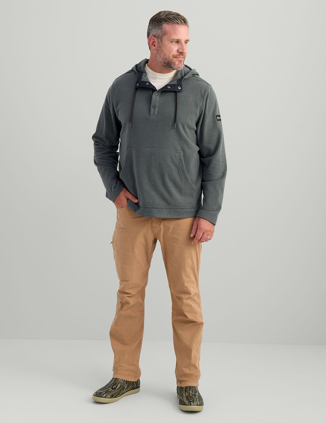 Built for crisp mornings, shifting weather, and long sits, the Still Trad Fleece Hoodie delivers dependable warmth in a streamlined package. Its 100% polyester Polar Tech™ fleece is perfect for shoulder seasons—light enough to move, warm enough to stand alone or layer up. A DWR finish fends off light moisture, while 4-way stretch keeps you fluid through every climb and stalk. The snap-closure kangaroo pocket locks down essentials so you can stay focused on the hunt. Rugged, comfortable, and ready for the woods.